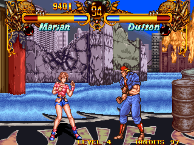 这一款街机游戏也算是当年街机游戏中的经典之作了,相信很多街机游戏老玩家应该对其有印象。当年在这款游戏中最受欢迎的角色就是玛丽,因为她的连招技能非常多,而且相当容易上手,随便组合都能打出一套连续技出去。她的招式不仅攻击速度非常之快,而且就连新手光用“前前C+C+其它键”来回搓,都能打出不错的效果来。