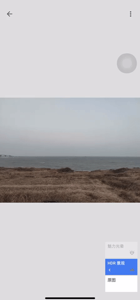 当这张海边照片的草地部分需要用HDR强化细节,而海面的区域“魅力光晕”调节,我们可以利用「蒙版」组合多种滤镜变化。