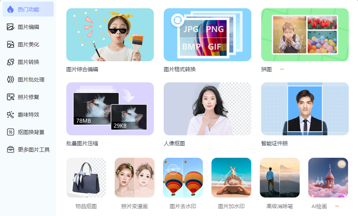 这款软件趣趣使用频率最高!它主要是针对图像本身进行处理,像常规抠图、照片变漫画、去除水印、制作证件照、添加趣味特效、拼图等等,基本上能满足你所有的修图需求!