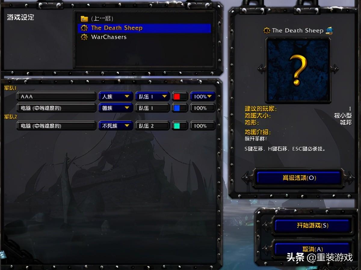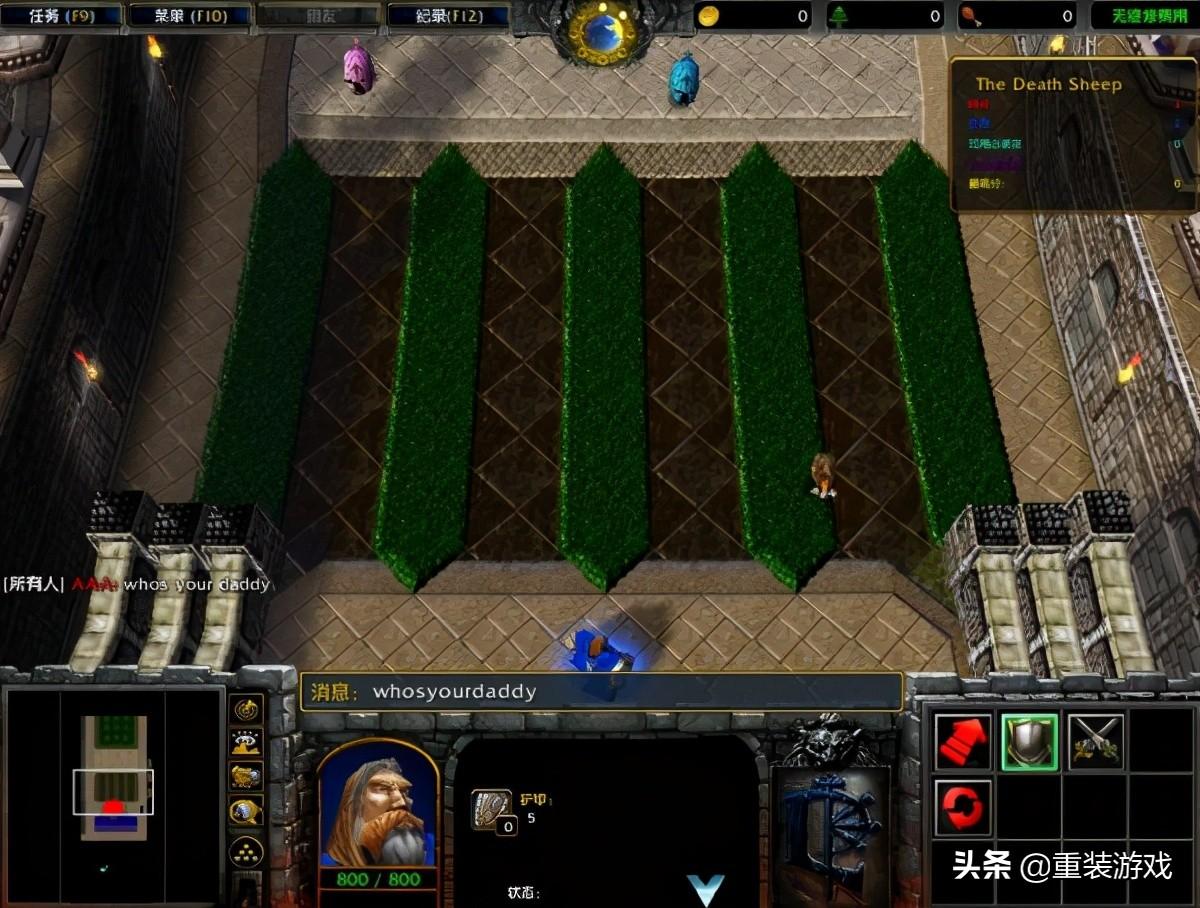 看来War3的程序还是十分健壮的,原本想玩玩守卫雅典娜,可惜这个安装包并没有内置此任务。只找到一个叫the death sheep的任务,这么多年一直不知道怎么玩,好像输入whos your daddy也没有什么卵用。