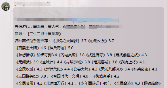 从用户角度来看,用户在乎的是无非是福利,于是渠道们后续跟进的手段和方法变得越来越直接。很快,大约在2014年上半年,佟季雪就看到市面上开始出现成批的低价“首充号”。