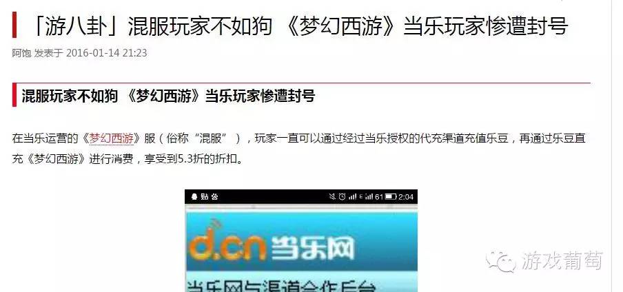 最近,《梦幻西游手游》官方贴吧一则帖子爆料称“已经有几百位当乐用户被以充值渠道不正规封停了当乐账号,所涉金额上百万”,发布该帖子的用户表示自己同为受害者。