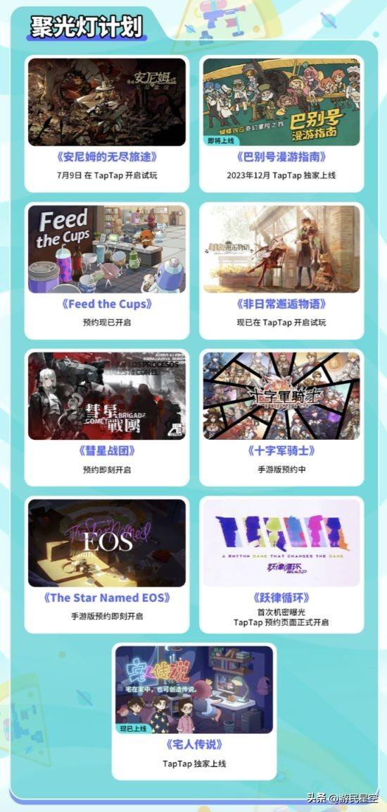 细心的玩家们应该也都发现了,这次发布会新增了“聚光灯计划”发布环节,由TapTap发起,联手怀揣创意和梦想的独立游戏开发者,为大家带来更多新奇好玩的游戏。