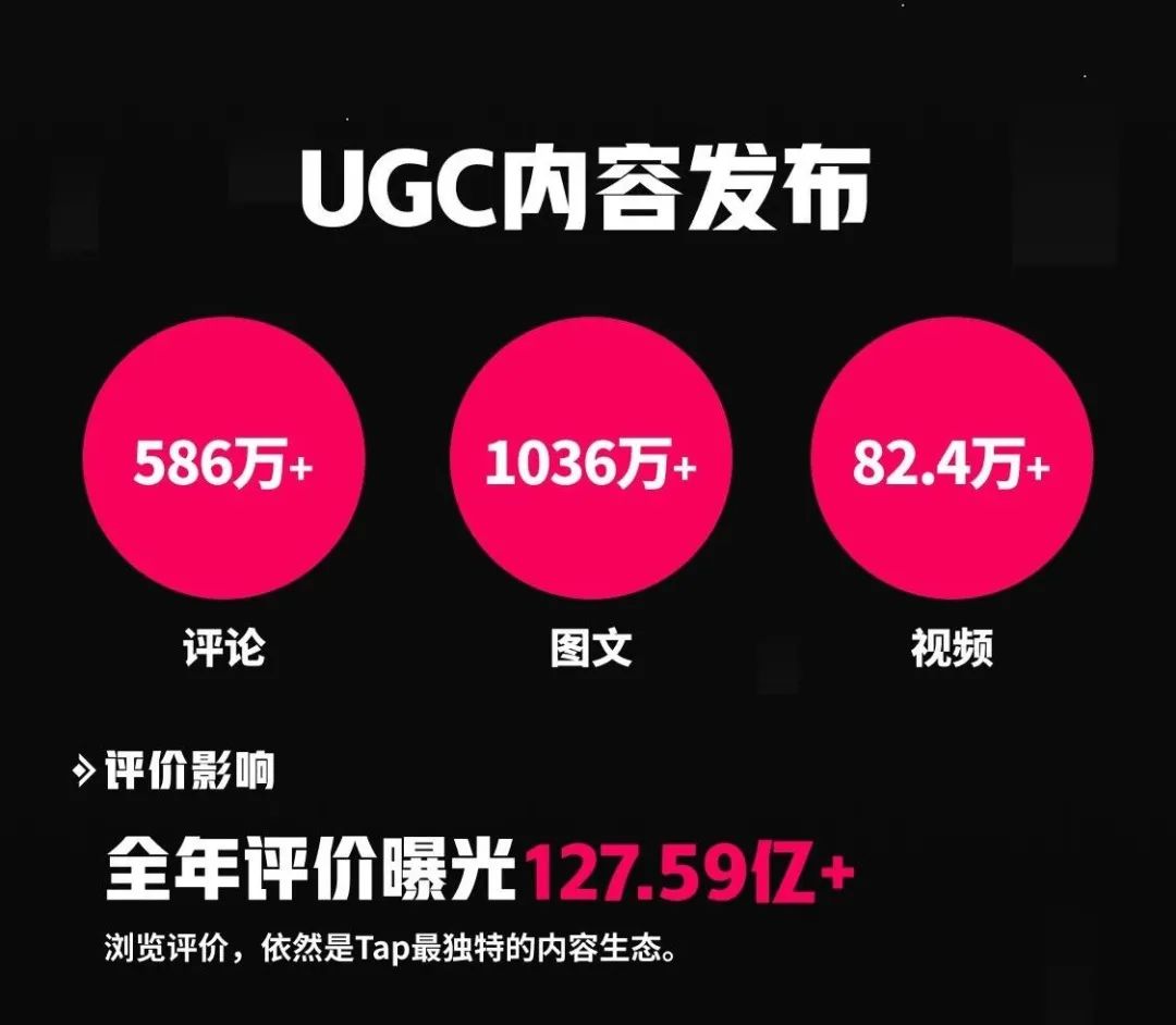 而创作生态的蓬勃生长,又成为TapTap进一步完善运营工具的动力和底气。2022年TapTap用户共创作了超过586万条评论、1036万份图文和82.4万条视频,累计曝光量127.59亿,为游戏传播提供了更多维的曝光手段。