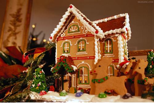 我们已经谈到了女巫。但由面包和糖果建成的房子如何解释?姜饼屋这个单词是由德语 ""翻译过来的。格林兄弟是首先在写女巫的故事中用这个单词的人,与其说他们让现实中的姜饼屋变得受欢迎不如说这是一部戏剧的功劳。随着时间的推移,这座房子逐渐成为一个标志,主要是因为在1893年12月演绎的童话歌剧,歌剧中的房子由蛋糕建造,被称为姜饼屋。歌剧的布景设计强化了这种感觉,它创造了某种只存在于想象中的东西,除了由蛋糕制成,这幢房子被一面姜饼人构成的墙包围着,它们是邪恶巫婆的受害者。