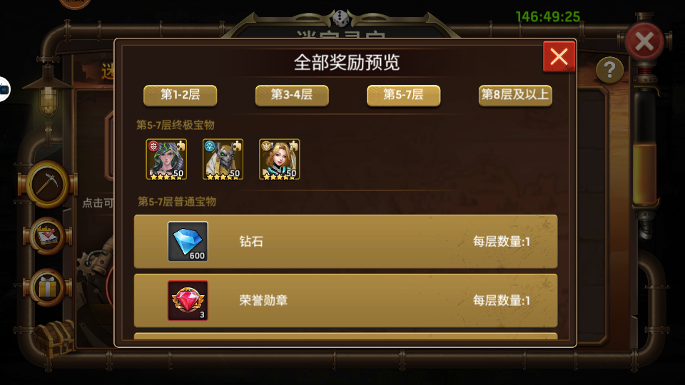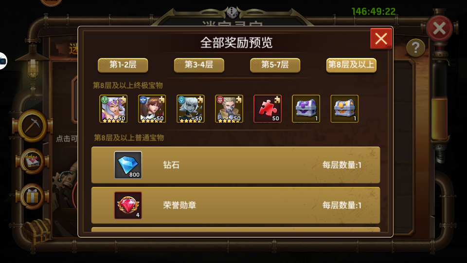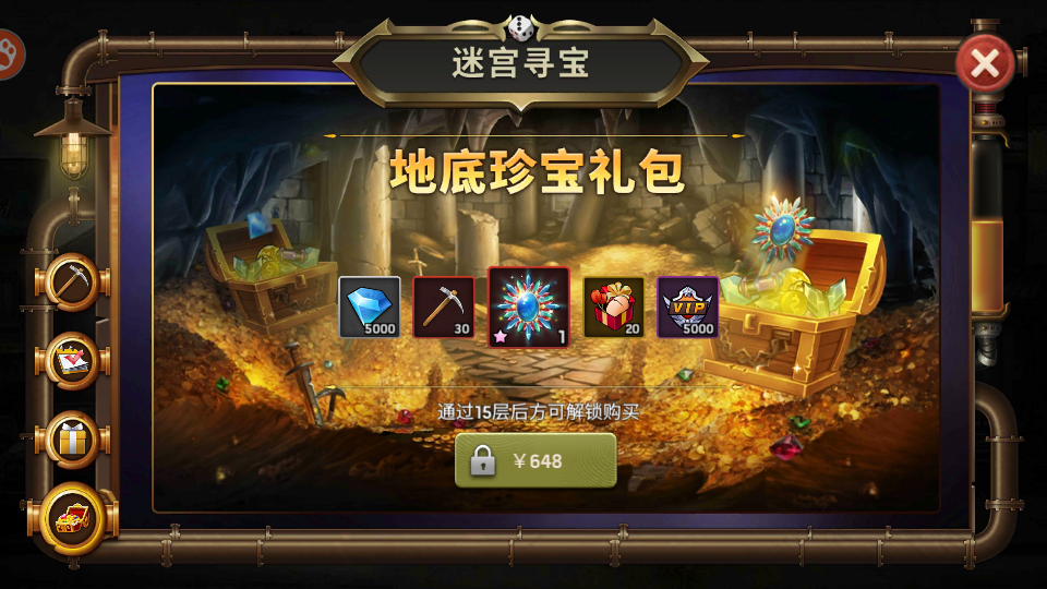 中低V、月卡党玩家是不用考虑迷宫活动的,活动中常驻有尼罗河之泪,需要挖宝到第15层,就是挖到底,会触发一个礼包,地底珍宝礼包