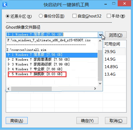 5、此时展开下拉菜单就可以看到很多个win7版本的选择,建议选择旗舰版来安装,如下图所示: