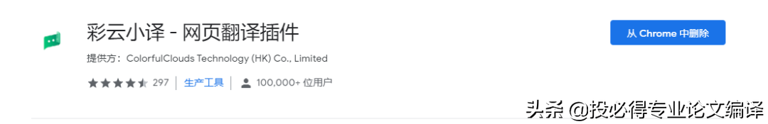 彩云翻译的翻译效果中规中矩,但是语言构成上比百度翻译通顺一些。尤其是很多英文是倒装的语序,彩云都能按照正常的中文表述形式进行翻译。不过这里要介绍的除了网页版的彩云翻译,还有一款叫做彩云小译的谷歌浏览器插件,可以在谷歌浏览器的应用中心输入【彩云小译】进行检索。