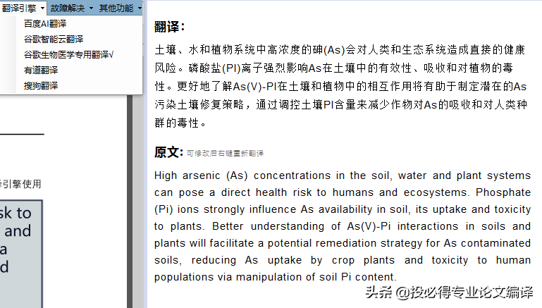 因为小虎编辑是生命科学领域的,所以所有的翻译示例都以生命科学的内容为主,不同的科研领域不同的翻译引擎翻译效果可能会有所差异。