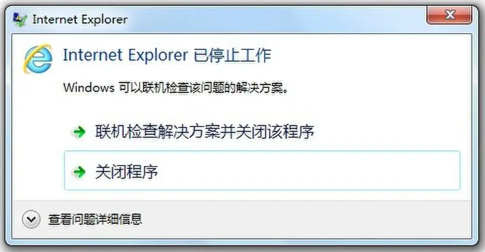 但要说最熟悉的,还是这个停止工作的弹窗。用过 IE 的都懂的。