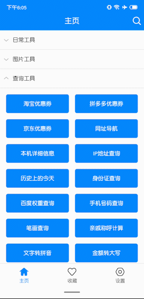 这个 App 把这些工具汇总分为 7 个项目,不包含最下面的趣味游戏的话!然后 7 个项目里面的工具加起来大概 130 个左右,叫它 “ 杂货铺 ” 也不为过。