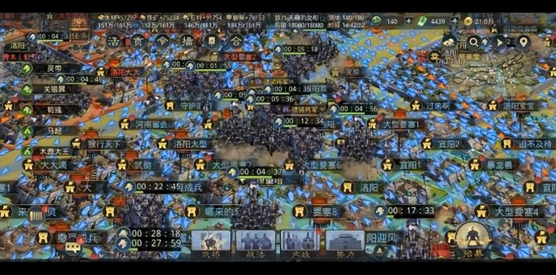 《率土之滨》的核心玩法就是占领地图上高级资源地,而地图上的城池基本上都是增加资源产量用的,打城也是用来保持征兵能力,连地机制只是让平民玩家有那么一个对抗氪佬的手段,但由于PVP逐格铺路实在太肝,这个玩法近年来逐渐要被淘汰了。至于打城机制就是简单的先清守军再上拆迁队,公会主打一个人数多,配合相当简单,PVP战斗时也缺乏手动操作,核心玩的还是配将,进资源州慢的公会,完全就失去了上洛(攻占都城洛阳)的机会。《率土之滨》在征服赛季虽然设计了各种剧本,但底层机制是固定的,后期主打PVP消耗,武将阵容弱或是肝度不够,怎么打都不行。