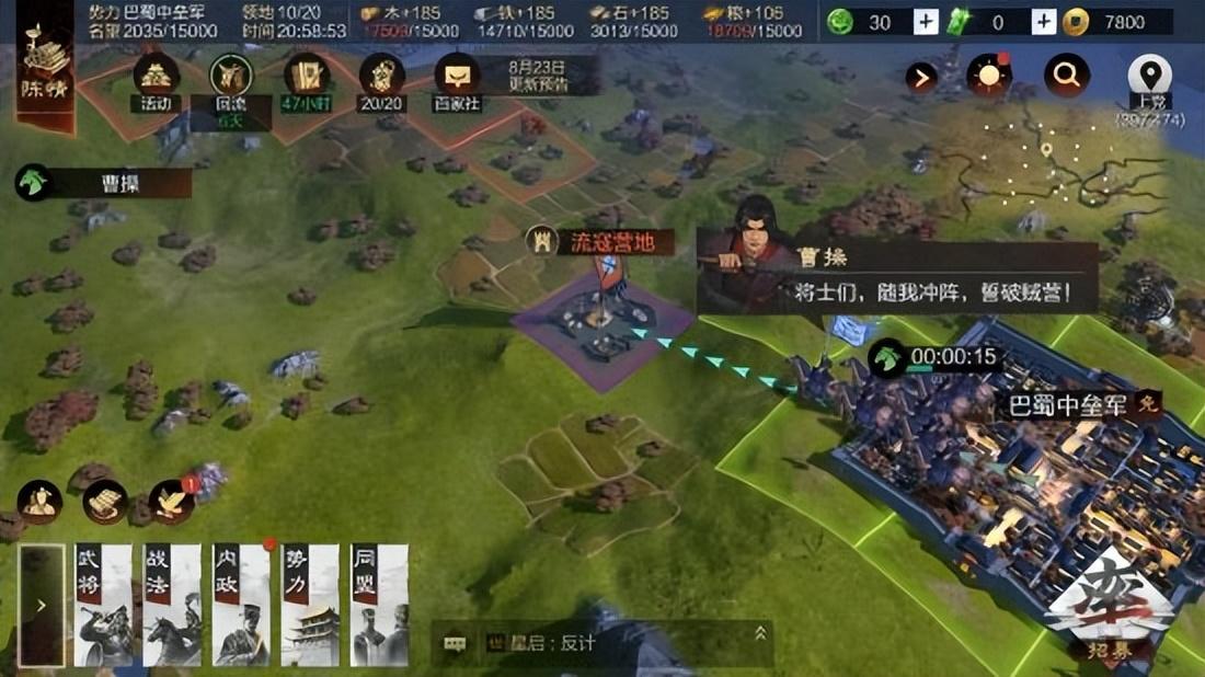 《战地无疆》的新手引导采用了类似三国志单机版的形式,每一章回都有内政提示,前期长达1小时以上的引导教程不仅教了兵种克制,还包括练级方式,资源地运营等诸多方面,新手能全面了解到这个游戏策略玩法。而《战地无疆》的内政发展方面没有采用率土like机制而采用了列王like机制,新手能白嫖很多加速建造时间,加上任务给的资源也比较多,造建筑基本不用思考,没有SLG基础的玩家玩起来也不难。