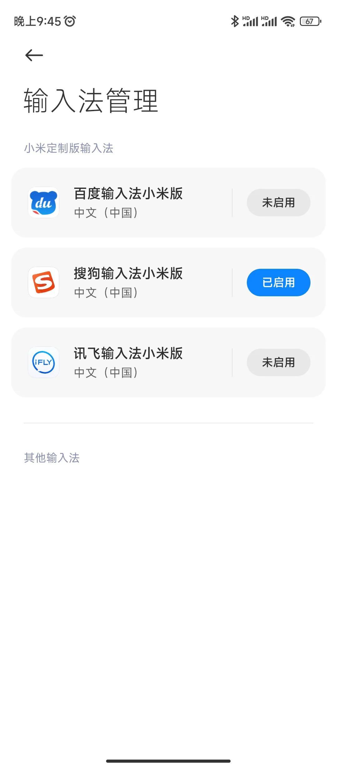 在“输入法管理”中选择“搜狗输入法小米版”。