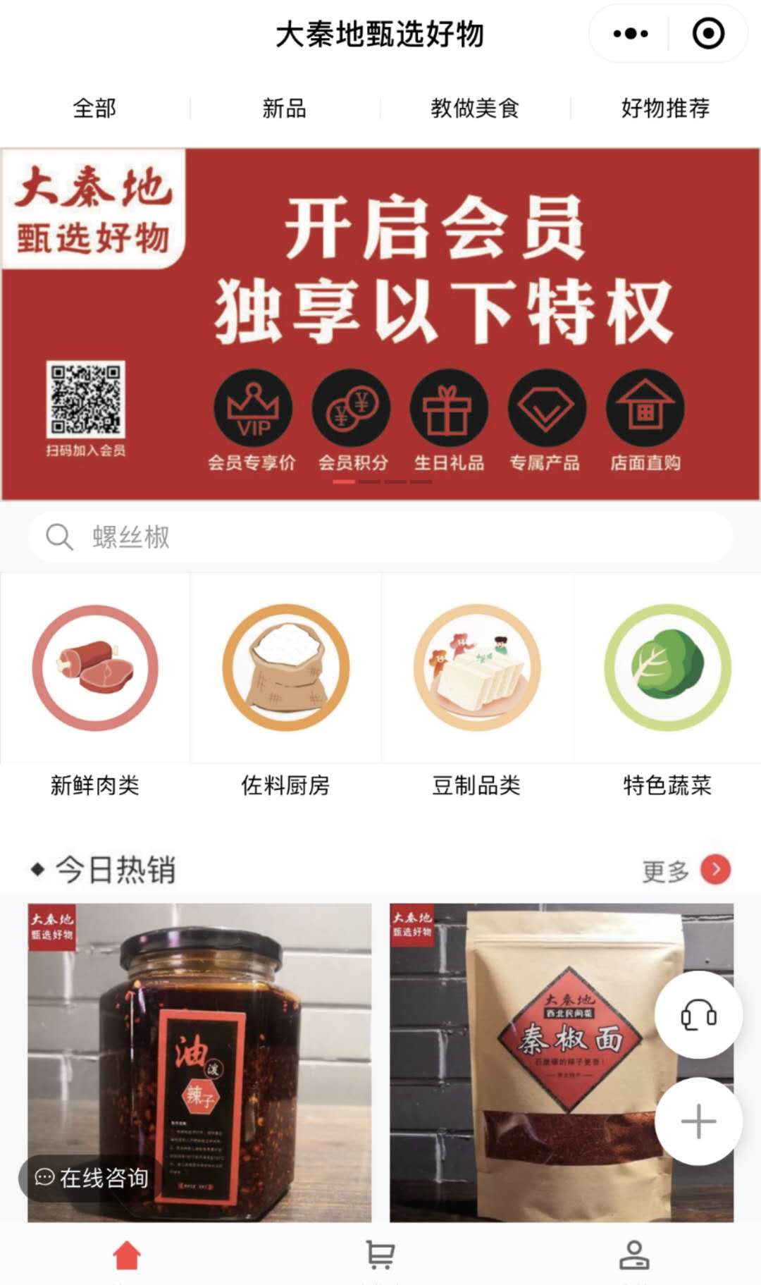 小编了解到,大秦地新上线的会员微信小程序,将“点餐”、“大秦地甄选好物”和“外送”三项功能集合与一体,能够全方位满足消费者的多样化需求。