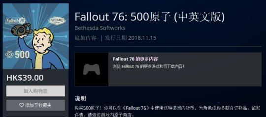 不过《辐射76》动力甲典藏版的定价是199美元,而500原子币在商店中大概是4.99美元(或39港币)。