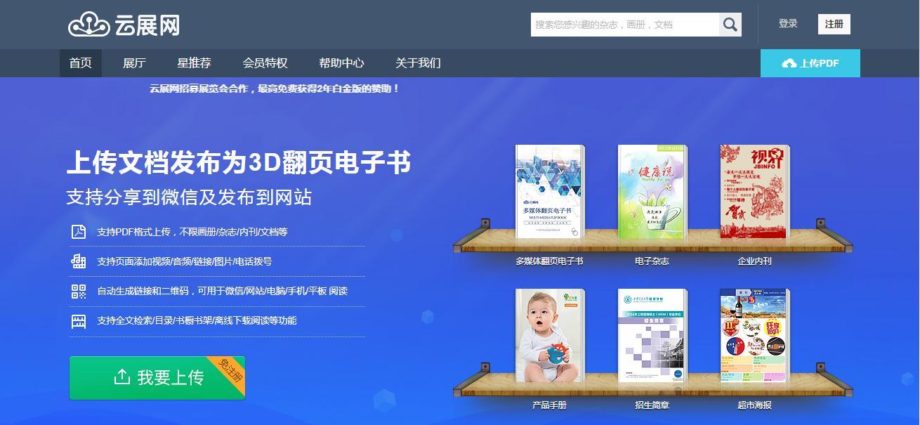 前不久看到一个在线转换格式,云展网,可以帮你把例如PDF等转换成杂志书籍,那样可以3D犯规的样子,很有趣。有兴趣的小伙伴,可以去试试。