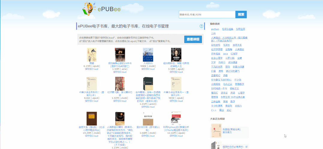 该网站已经推荐很多次,页面非常简单,主要是电子书搜索平台,很多常见的著名的书籍都能找到。