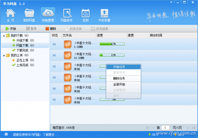 图11 使用华为网盘的“传输管理”功能实现下载的灵活控制