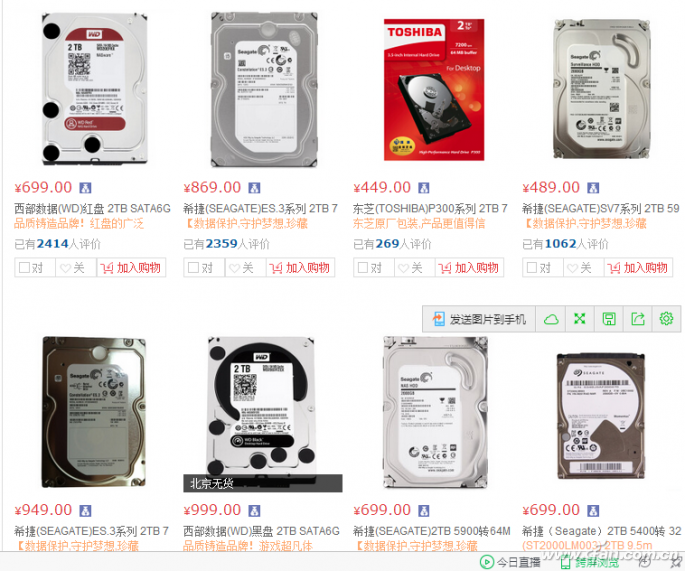 还有一个严酷的问题,有的用户在网上申请了多个云盘账户,每个账户都存满了文件。比如:共申请了4个云盘,每个大约有2TB的资料,这样一算,4个云盘的资料加起来就有7TB到8TB的容量。如果要将这些资料在“大限”前下载到本地,即便是带宽和时间允许,也要求本地至少拥有4块2TB的空白硬盘才能容得下这些数据。但是,即便是目前硬盘“掉价”,购买4块2TB的硬盘,最节省也需要将近2000元(图3)。这对于普通的用户来说,也不是一个小数目。那么,除了购买硬盘之外,还有别的解决办法吗?