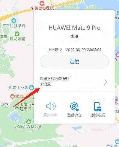 在设备丢失后便关机的情况下,可设置设备上线短信通知,填写自己的联系方式,待设备开机联网时接收通知信息。再进行以上操作。