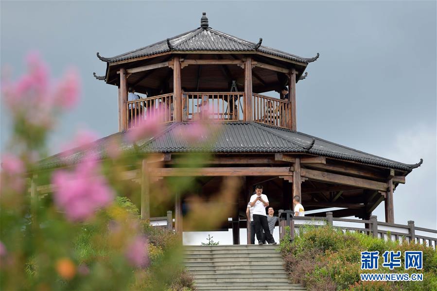 游客在江西省寻乌县文峰乡上甲村附近的生态修复区观光游玩(7月19日摄)。 新华社记者 彭昭之 摄