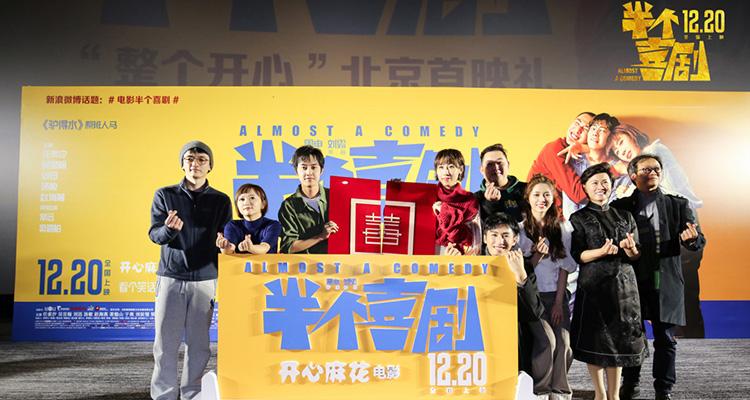 12月18日,由周申、刘露编剧兼导演,任素汐、吴昱翰、刘迅、汤敏、赵海燕主演的电影《半个喜剧》在北京举办了“整个开心”首映礼。编剧兼导演周申、刘露,主演任素汐、吴昱翰、刘迅、汤敏、赵海燕、裴魁山、梁瀛悉数亮相,坦率交流影片“嬉笑怒骂,全是真实”的幕后点滴,见证观众“开怀大笑”的观影收获。活动现场,观众数次响起掌声与笑声,该片也被封为“年度解压神器”。而面对片中感情观的讨论,导演周申、刘露也表示:“希望大家不要把这个圆满的结局看作是种理想主义,而是把它看作是现实主义下的一种可能的出路。”更有不少观众表示片中的“北漂”“户口”“租房”等贴近生活的话题,也真实刻画了当代“社畜”们的生活,主演吴昱翰还因其饰演的孙同在现场获封“社畜代言人”。