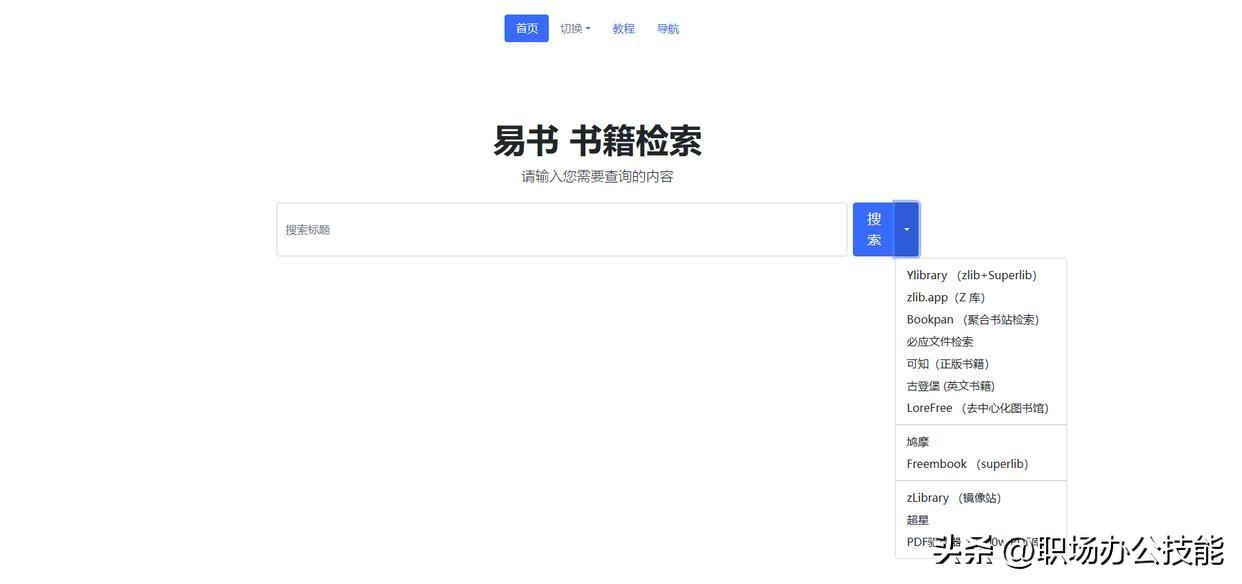 一个电子书资源非常丰富的网站,它里面有1000多万本电子书可以下载,不管是国内的电子书还是国外的电子书都可以用它查找,没有具体的分类,想要什么书籍直接搜索就行,支持中文搜索。