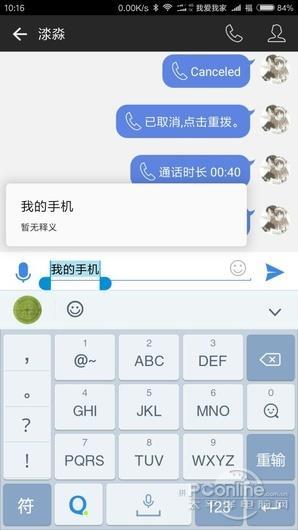 翻译功能支持语言较为丰富。可惜的是,用户自己发送的文字却不能直接的转换为对方说使用的语言,此外,在输入栏也能进行文字翻译,不过仅限单词,字数一多就“暂无释义”。有趣的是这里的翻译支持用的竟然是金山词霸的,而不是腾讯自己的。