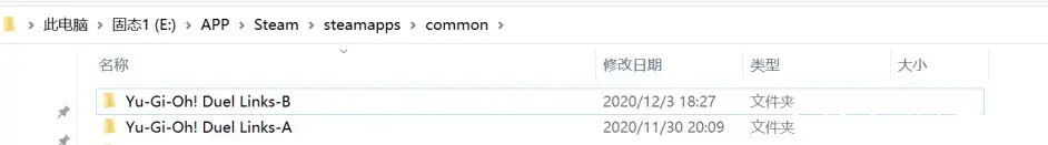 目前,如果有A、B两个steam号,虽然各自绑了不同数据,但在同一台电脑上换号的时候,都会要求重下。解决办法为将A、B号的对应游戏文件夹分别标记命名,要上哪个号的时候把对应文件夹重命名回正常命名。具体操作步骤为:登A号,确认A号的DL游戏是可以正常上的情况下,浏览DL的本地文件,找到“Yu-Gi-Oh! Duel Links”文件夹,将之命名为“Yu-Gi-Oh! Duel Links-A”;然后切上B号,点开DL,会让重下游戏和卡图,一切都下完后,退出游戏,再打开本地文件,再找到“Yu-Gi-Oh! Duel Links”文件夹,将之命名为“Yu-Gi-Oh! Duel Links-B”;这时如下图,A、B号的对应游戏文件夹都在了,要登哪个号,重命名回“Yu-Gi-Oh! Duel Links”即可。