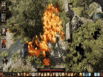 火焰、闪电、寒冰…这些司空见惯的元素符号,在普通的游戏中仅仅是作为字面上的属性存在,而在《神界:原罪》中,对它们进行简单的序列组合则可以将战场状况瞬间扭转。元素对地表环境的影响 是初代最饱受好评的系统之一:水可以导电,也可以灭火,而火又会蒸发水产生蒸汽云,而蒸汽云又可以转换为电积云(这并不是在玩《魔能》)…每一个元素都互相作用。