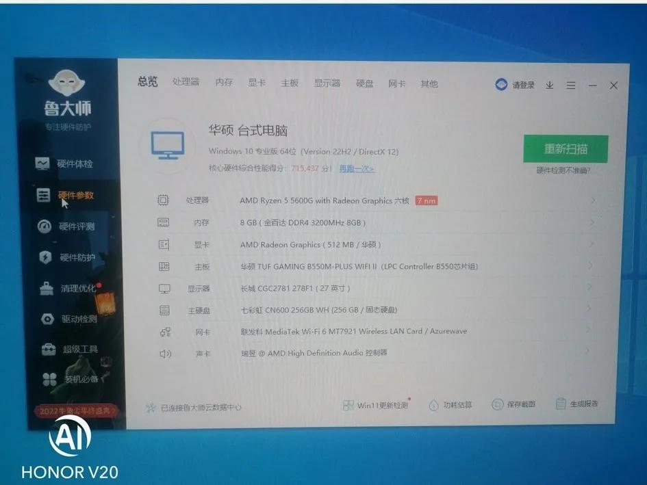 然后自己就着手选配件,一晚上敲定了用AMD R5 5600g配华硕的b550重炮手WiFi,内存金百达银爵8g3200,硬盘长城128g,散热超频三五铜管,电源长城神威额定三百瓦,机箱积至非凡电竞1号,显示器小米27寸2K版,加上辅件键盘鼠标音箱摄像头等网上价格总共两千八百多