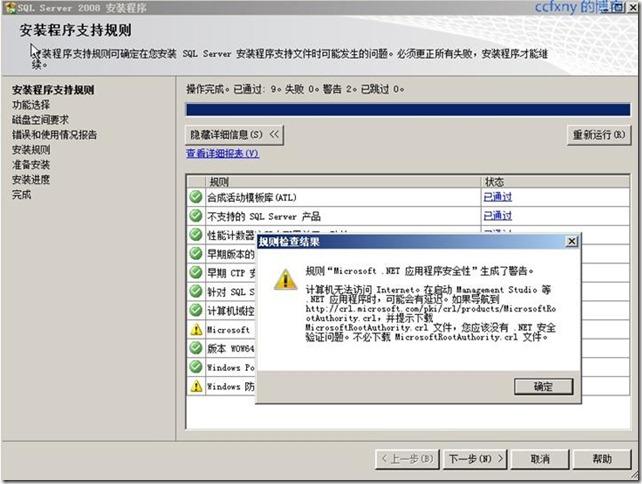 弹出【安装规则】对话框,安装程序正在运行规则以确定是否要阻止安装过程,有关详细信息,请单击“帮助”。