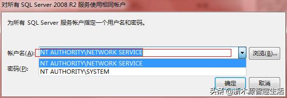 在出现的对黄框中,为所有SQL Server服务账户指定一个用户名和密码。