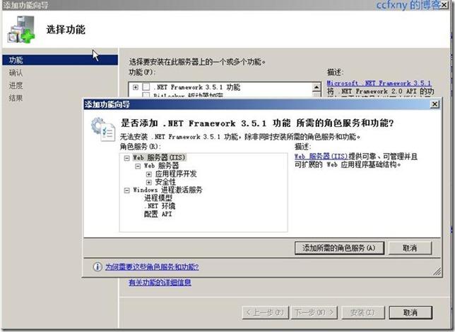 3.打开功能安装向导,选择.net,要求安装.net所需要的其他角色