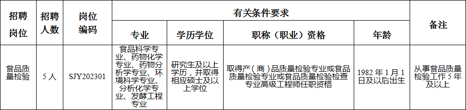 详见《四川省食品检验研究院2023年度公开考核招聘工作人员岗位和条件要求一览表》。