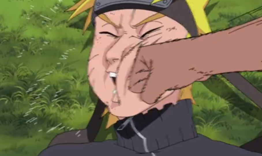 可怜的鸣人,被卡鲁伊一顿顿胖揍,鲜血直流,眼睛都青了,脸都肿到变形了。鸣人从小到大,虽然经历过了许许多多次战斗,但是被打得这么面目全非的可能就只有这一次了。卡鲁伊担心奇拉比的安危,这份焦虑自然容易理解,但是把手伸向无辜的人,却很不应该。