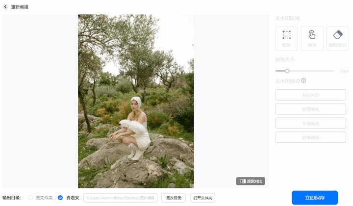 根据图片上的水印内容选择对应的水印模式,然后点击去除水印,很快就能在页面看到去除的水印图片,还支持查看前后去水印的效果图。