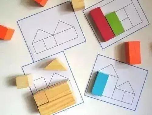 家里雪花片、硬纸板自制的卡片等等,都可以拿出来给孩子拼拼插插。