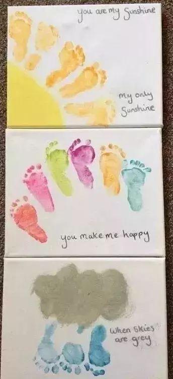 用小脚丫拓印出五颜六色的图案,每年玩一次,还可以见证成长过程,很有意义呢。