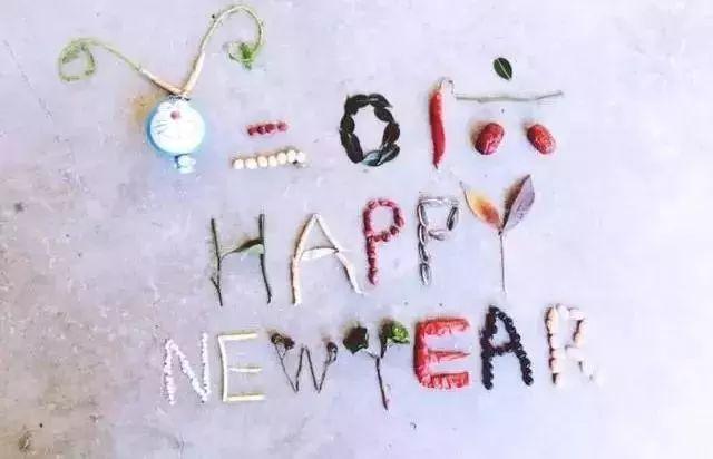 用各种自然物和年货,一家人一起拼拼贴贴出一个“新年快乐”,是不是特别有意义呢?