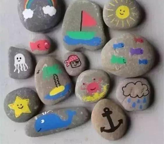 捡拾到的石头,用颜料在上面涂鸦,绝对是暑假打发时光的好游戏。