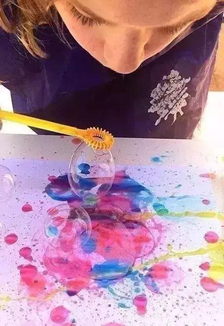 纸上滴几滴颜料,在上方吹泡泡,看看会发生什么奇妙的反应?