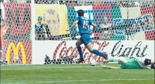 虽然,不用这么介绍,我们也能清楚看到虚构的人物出现在绿茵场上时那种背景的虚假和分离。