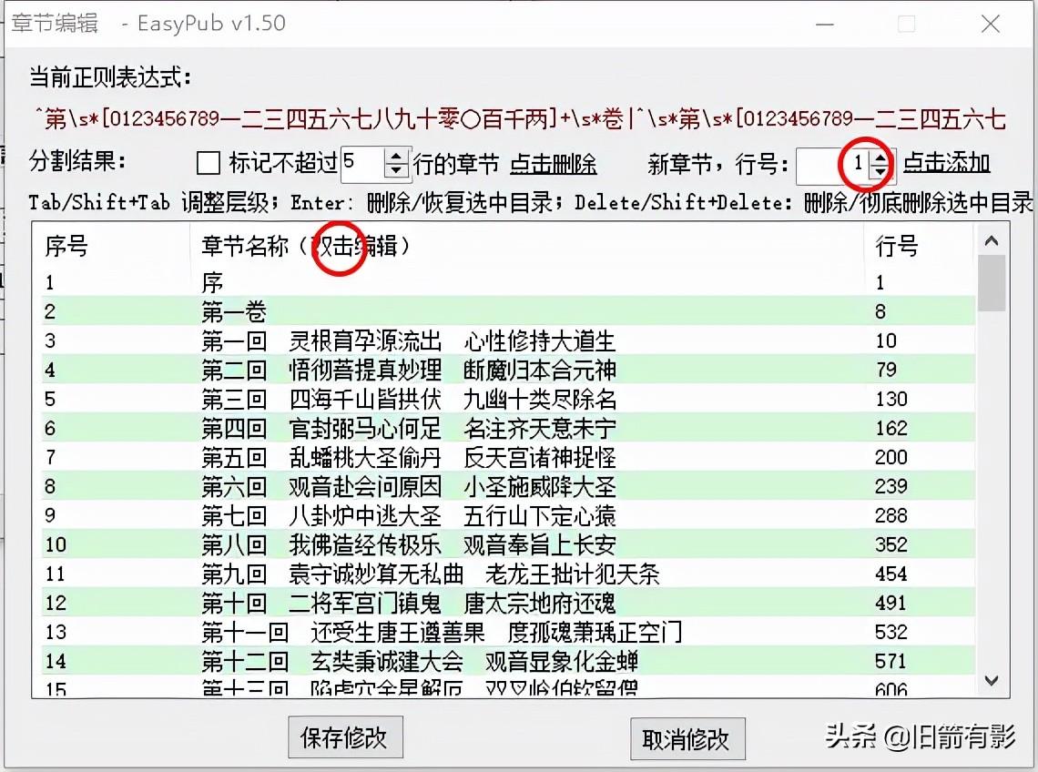 “章节编辑”建议使用简易规则,去掉行首空格,可以实现两种编排方法的目录标题同时生成,如“第x卷”“第x回”。