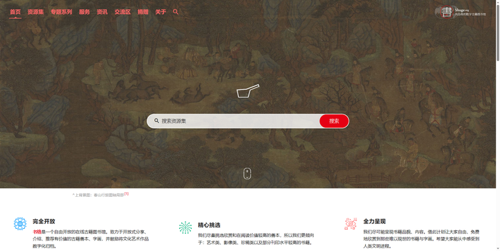 这是一个在线古籍图书馆,提供艺术类、影像类、珍稀类以及部分刊印水平较高的书籍。