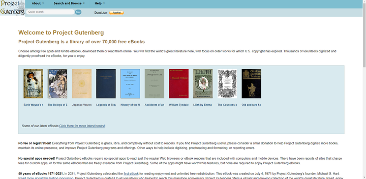 这是一个拥有50年历史的免费电子书下载网站,创始人迈克尔哈特,在1971年创建第一本电子书并建立网站,一直免费至今。目前拥有超过60000多本免费电子书,全部支支持免费下载!