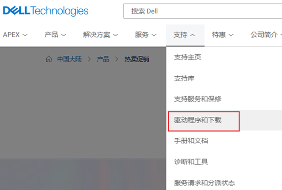 1、百度进入电脑品牌官网,如戴尔电脑进入戴尔官网,点击“支持”—“驱动程序和下载”。