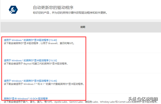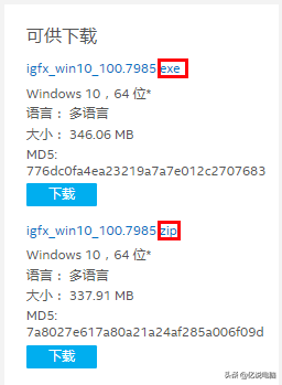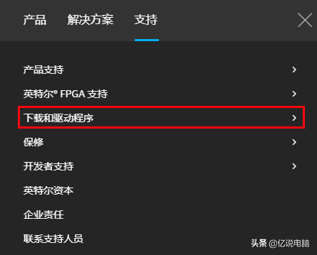 3.核显,核显分AMD和英特尔的,AMD的跟独显一样,去官网找个自己的型号下载就行了,我们来看看英特尔的核显怎么下载。百度英特尔官网,或输入网址www.intel.cn,进入英特尔官网,点击左上方的支持按钮,在弹出的窗口选择下载和驱动程序,再选择浏览和查找驱动程序,再选择显卡驱动程序,找到适用于我们CPU的核显驱动后点击一下进入下载界面,看看界面下方的支持列表里有没有我们的CPU型号,如果有说说明我们的CPU核显可以用这个安装包,确定没问题了在界面左侧点击下载。英特尔提供了.exe和.zip两种格式,下载完了直接下一步下一步安装就可以了。