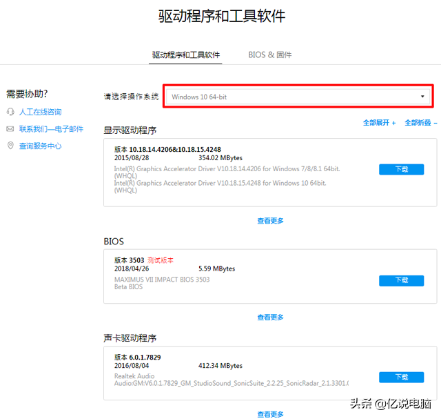 这里注意一下,我们一般不是用独显就是核显所以显卡驱动不用下载了;BIOS如不需要更新也不用下载;公共程序是华硕为自家主板推出的一些超频软件系统监测软件和一些系统工具,根据自己需求要不要下;固件是英特尔的ME管理引擎,可下可不下;QVL列表是主板内存支持的兼容性列表,这个不是驱动不需要下载。其余的都是必备的驱动程序,就挨个下载吧。